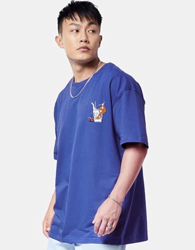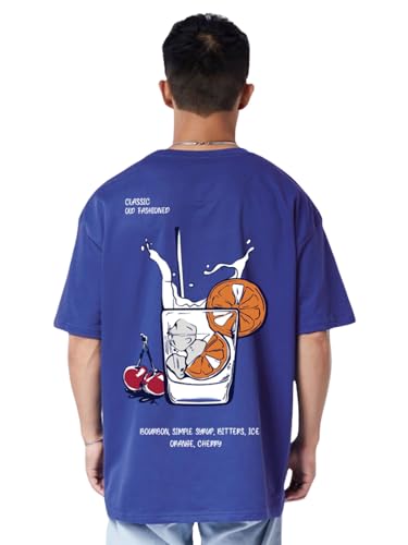 Veirdo® Pure Cotton Drop Shoulder Round Neck Oversized Fit Milk Back Graphic Print Royal Blue Half Sleeve T-Shirt Men (Available in from S to 2XL)