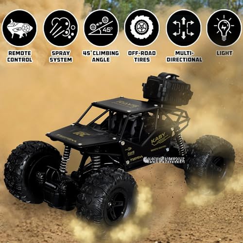 TEC TAVAKKAL Remote Control Rock Crawler Mist Smoke Spray Function, High Speed 1:18 RC Car Toys for Boys 2WD Off Road Vehicle Toy Cars for Kids Monster Truck Rock Climbing Car Toy for Kids Black
