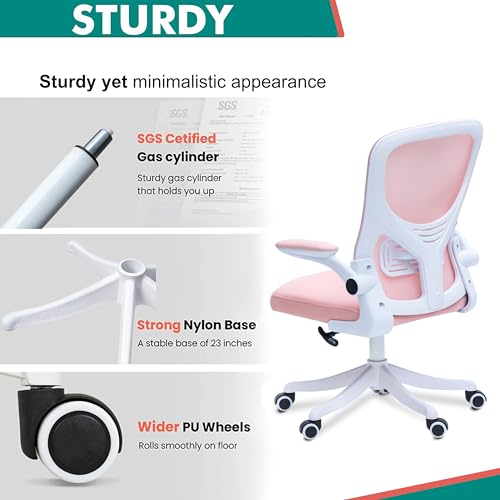 ERGONOMIC OFFICE CHAIR / STUDY CHAIR / COMPUTER CHAIR: The S-shaped backrest of the office desk chair aligns with your spine’s natural curve for maintaining the correct sitting posture. High-quality wear-resistant mesh fabric keeps air circulation to avoid sweating and sticking. The widened seat is filled with high-density rebound foam, which will not sink with long-term use. The waterfall edge design will relax your thighs greatly!