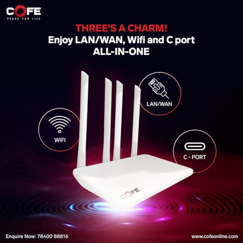 Be the first to review “COFE CF-05-CTwith 300Mbps Speed Support 4G/5G Sim Wi-Fi Router Support Type-C Internet & Power with Micro SIM Card Slot and 4 Antenna, (128MB RAM,) (COFE CF-05-CT)”