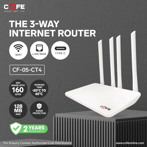 COFE CF-05-CTwith 300Mbps Speed Support 4G/5G Sim Wi-Fi Router Support Type-C Internet & Power with Micro SIM Card Slot and 4 Antenna, (128MB RAM,) (COFE CF-05-CT)