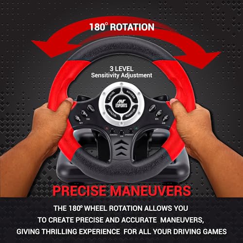 Ant Esports GW170 Competition Racing Steering Wheel with Universal USB Port and with Pedal, Suitable for PC, PS3, PS4, Xbox One, Xbox Series S&X, Nintendo Switch and Android TV – Red Black