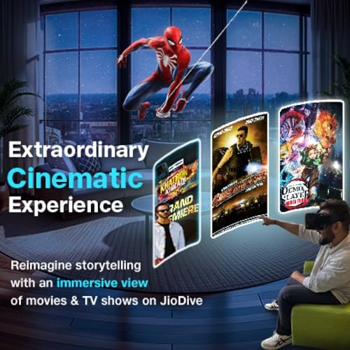 Access to the largest collection of 360° VR content & experiences. Watch 6,000+ movies, 1,000+ TV shows with JioCinema & 1,000+ Live TV channels with JioTV XR