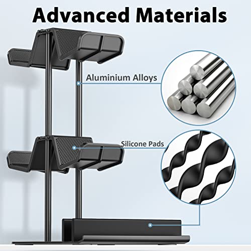 OIVO game controller stand stores 4 controllers, universal for PlayStation PS5/PS4/PS3/PS2, Xbox One, Series X/S/Elite, Nintendo Switch Pro controller. The game controller organizer serves as a perfect nintendo switch and TV dock holder, mobile phones protective showcase and gaming headset holder for desk. It would be a big surprise for your gamer friends and family!